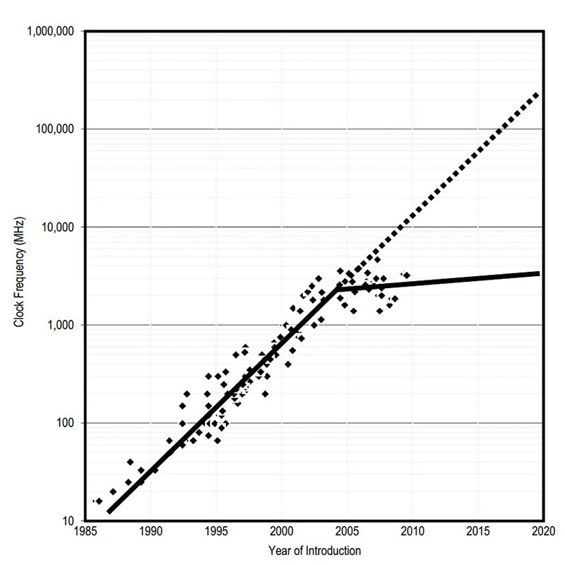 The explosive growth of the web2 era outpaced the growth of hardware and adapting to “web scale” meant splitting your workload across more than one machine. During this early 2000s era, CPU speed was measured in megahertz and RAM was measured in megabytes so horizontally scaling was the only option to handle such a load. While hardware capacity would eventually catch up to “web scale,” these stateless patterns codified beforehand. - Moore’s Law died